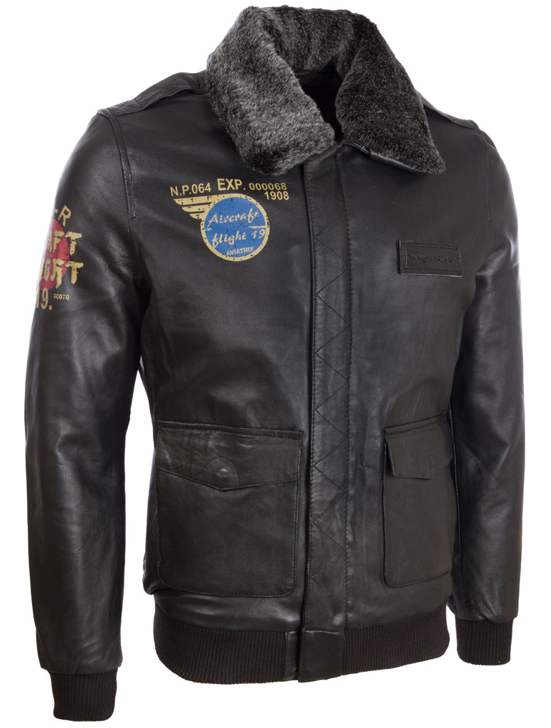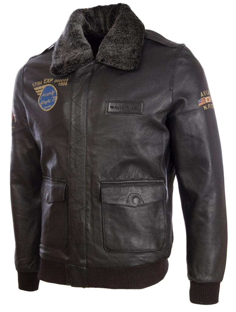 VGS3 Men's Aviator Bomber Jacket - Black/Snowtop Fur
