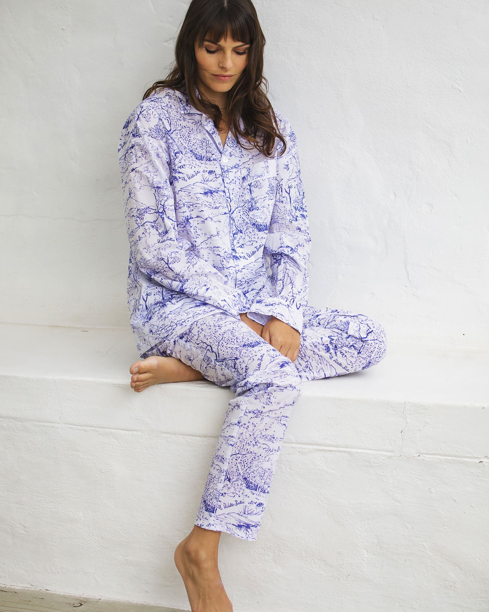 Handcrafted in 100% pure cotton, these women's pyjamas are the epitome of comfort, featuring hand-stitched piping on the rounded collars, pocket and cuffs.