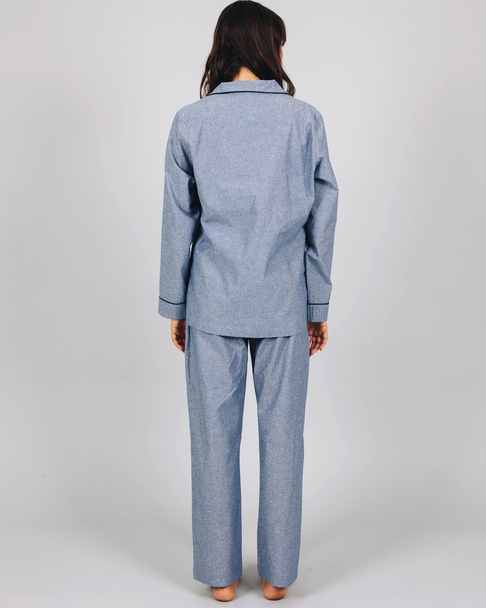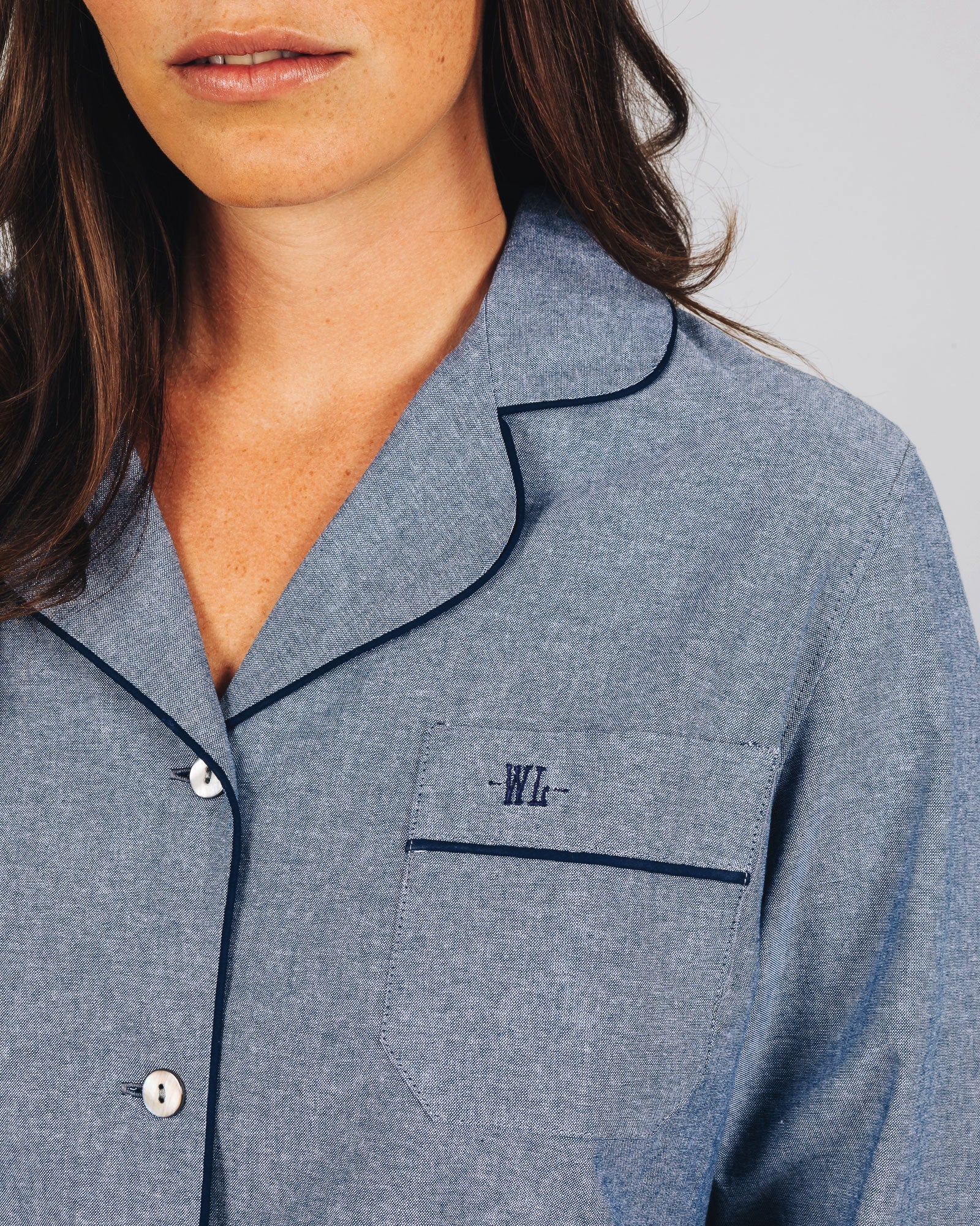 Sleek and sophisticated, these Women's Long Pyjamas are crafted in luxurious chambray cotton for a look and feel of utmost excellence. Feel pampered and indulged in the timeless design and exceptional craftsmanship.