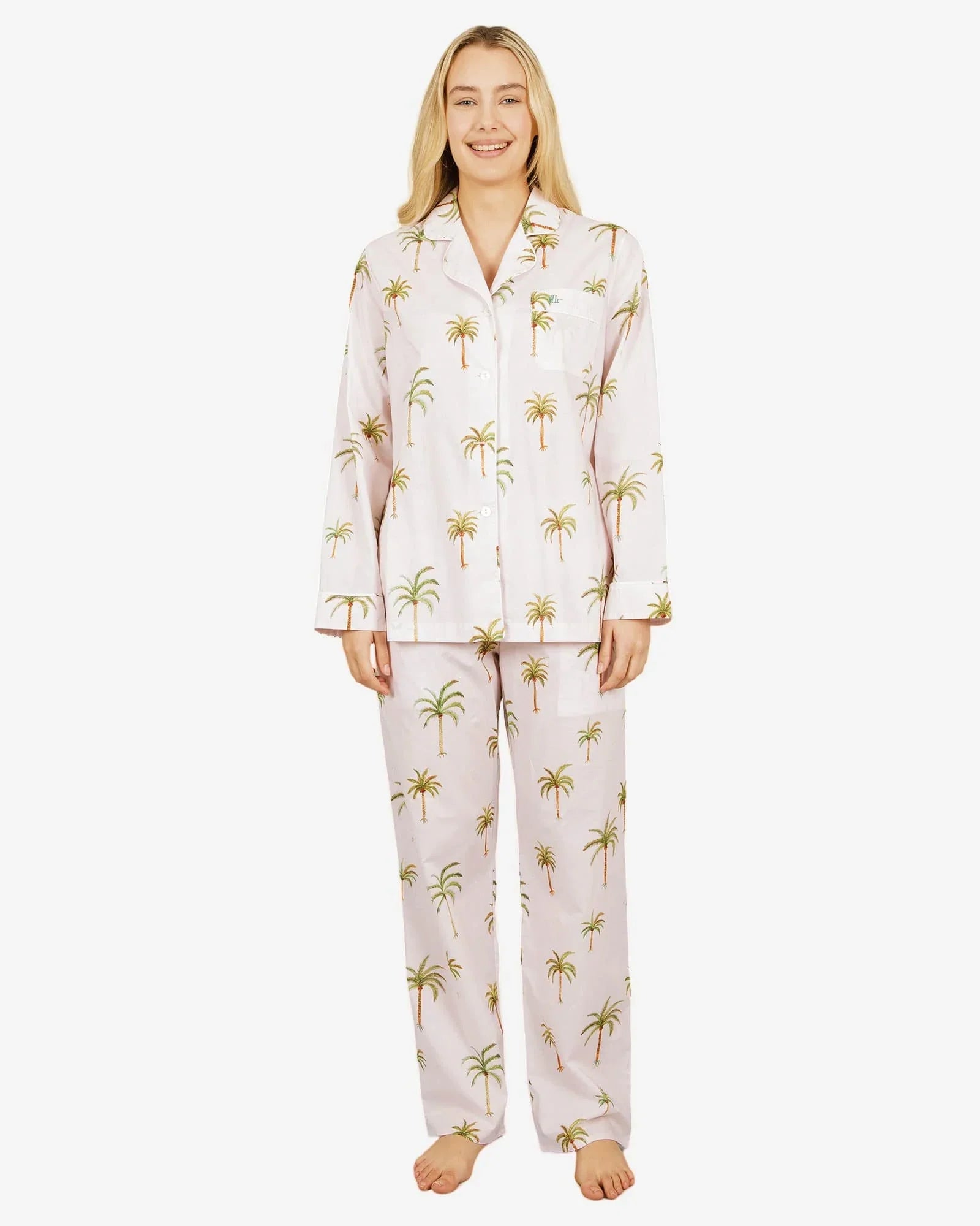 Handcrafted in 100% pure cotton, these women's pyjamas are the epitome of comfort, featuring hand-stitched piping on the rounded collars, pocket and cuffs.