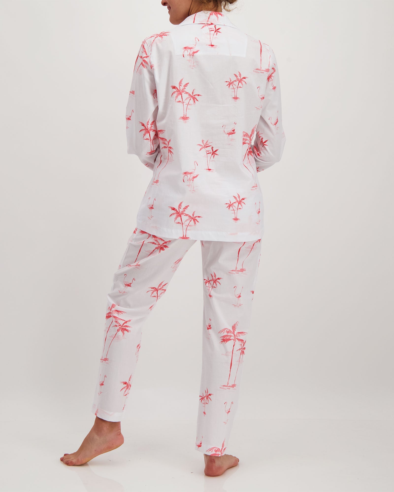 Pink Palms is a constant favourite with our customers, light and feminine with a hint of the oriental, it's stylish and sophisticated. Handcrafted in 100% pure cotton, these women's pyjamas are the epitome of comfort, featuring hand-stitched piping on the rounded collars, pocket and cuffs.