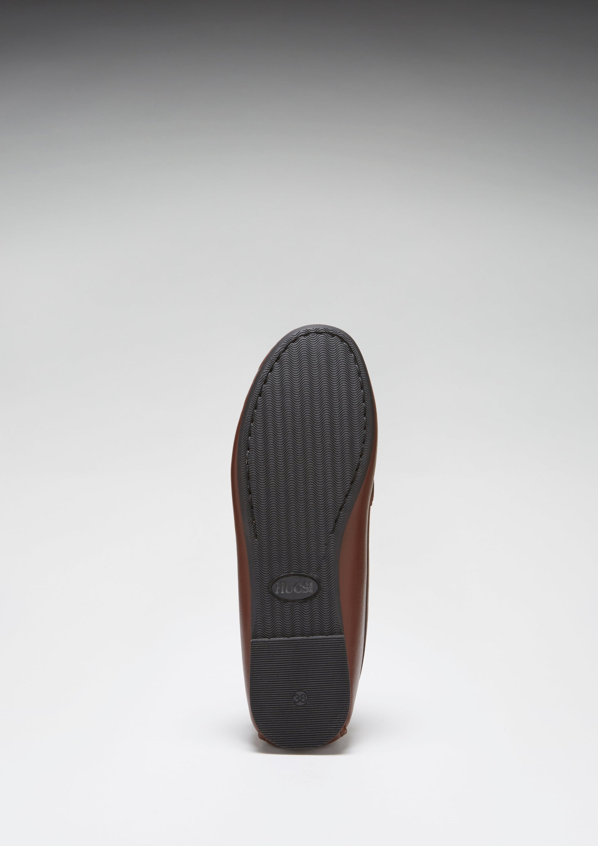 Hugs & Co. brown leather penny loafer driving shoes for women. Moccasin style driving loafers in luxurious black leather outer and lined with a soft leather for extra comfort. The full rubber sole gives this classic loafer a more versatile twist! We recommend taking a size down in this full rubber sole style.
