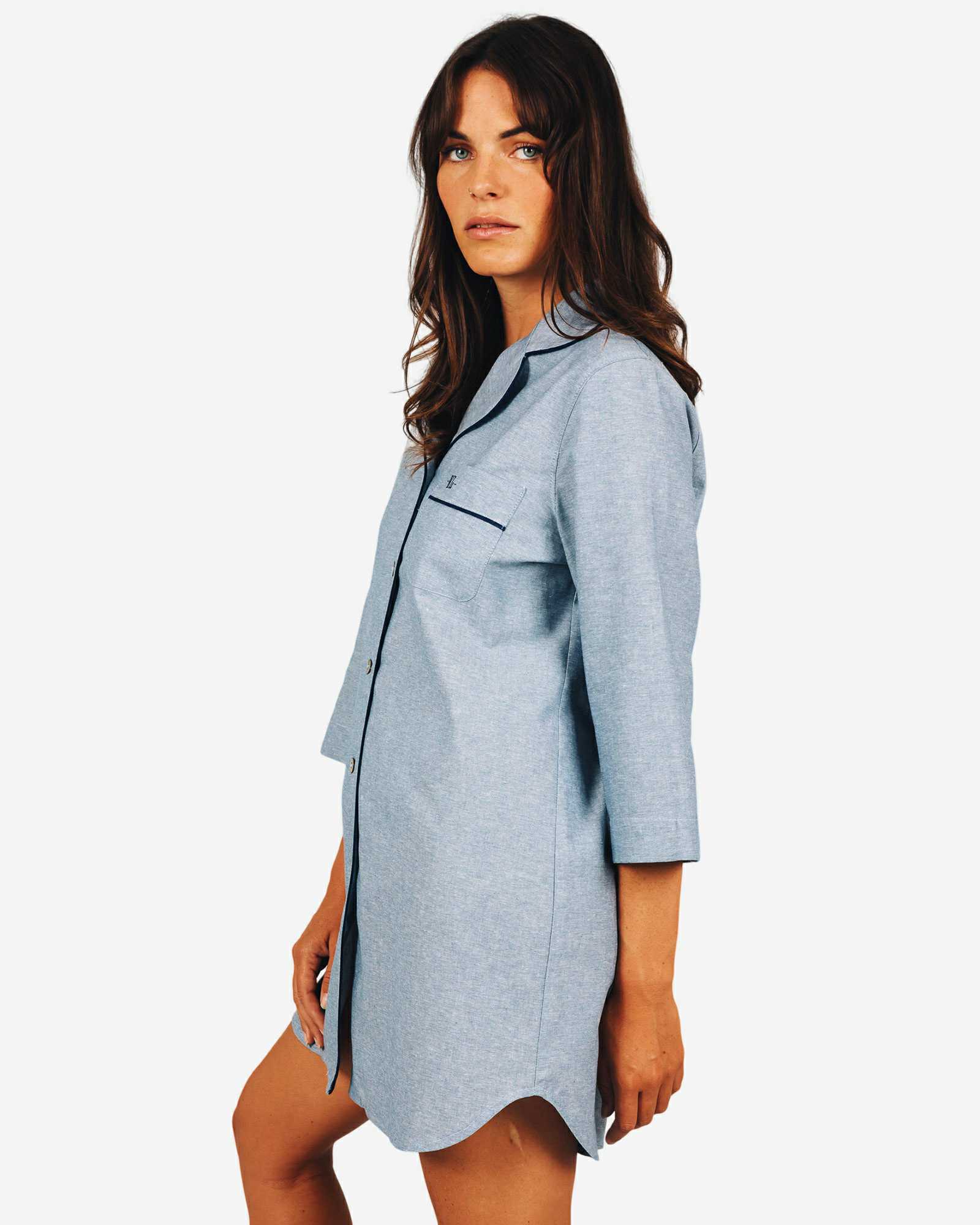 Women's Sleep Shirt - Blue Sky with Navy Piping
