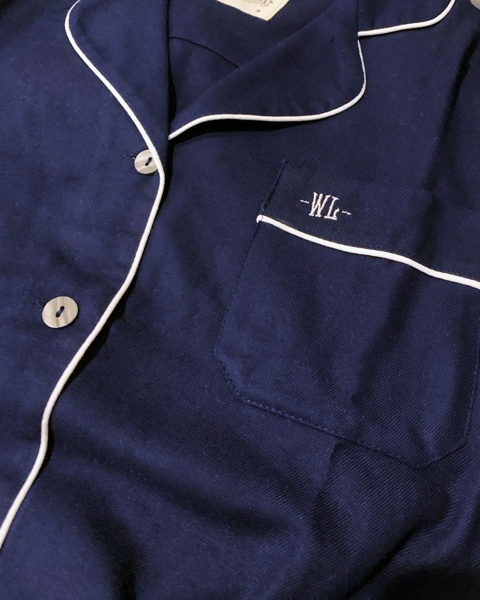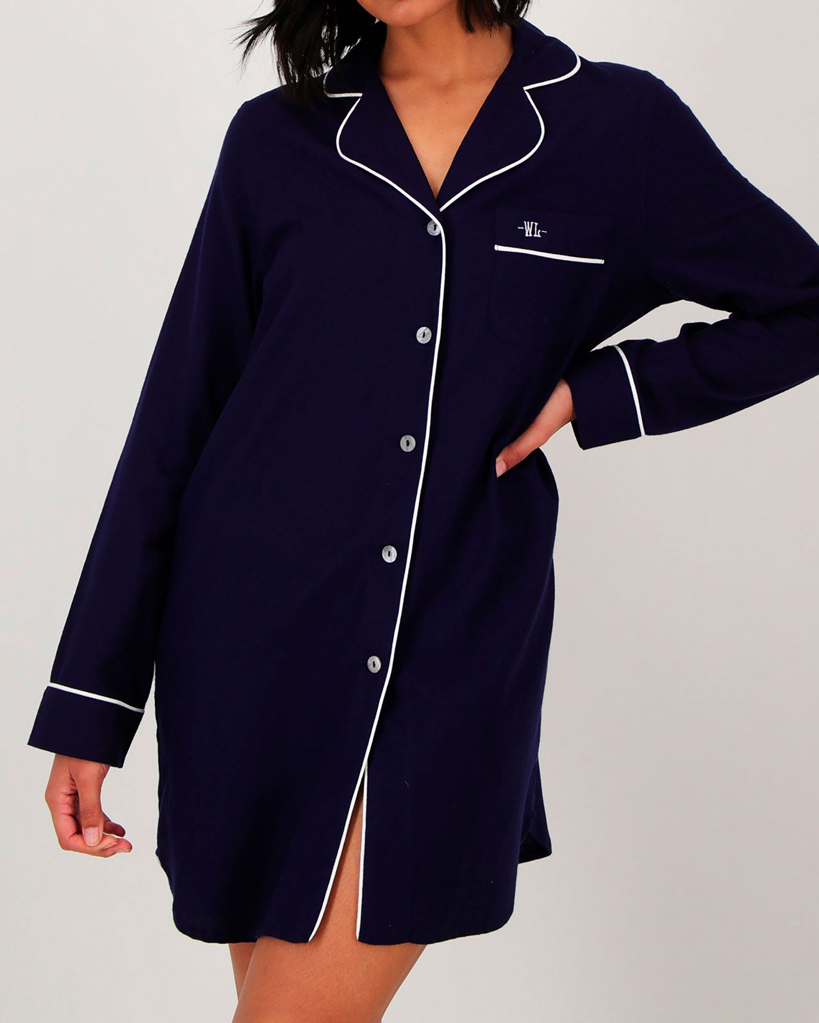 Women's Sleep Shirt - Navy Flannel with White Piping