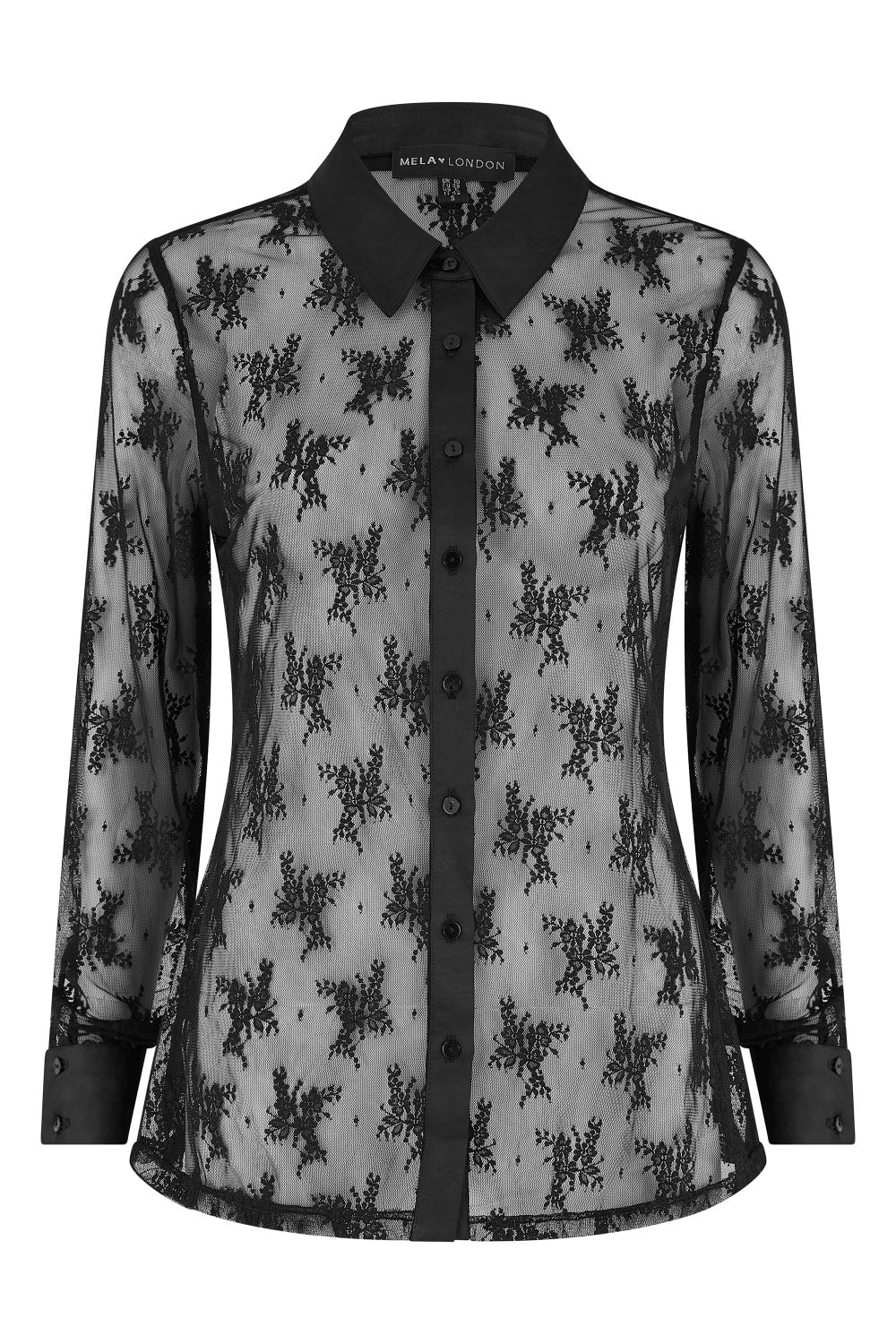 This gorgeous shirt has a romantic twist. Made from sheer lace with a blossom style, button down design with cuffs and collar. We love this styled with a leather skirt and some boots for an edgy look as the weather cools.