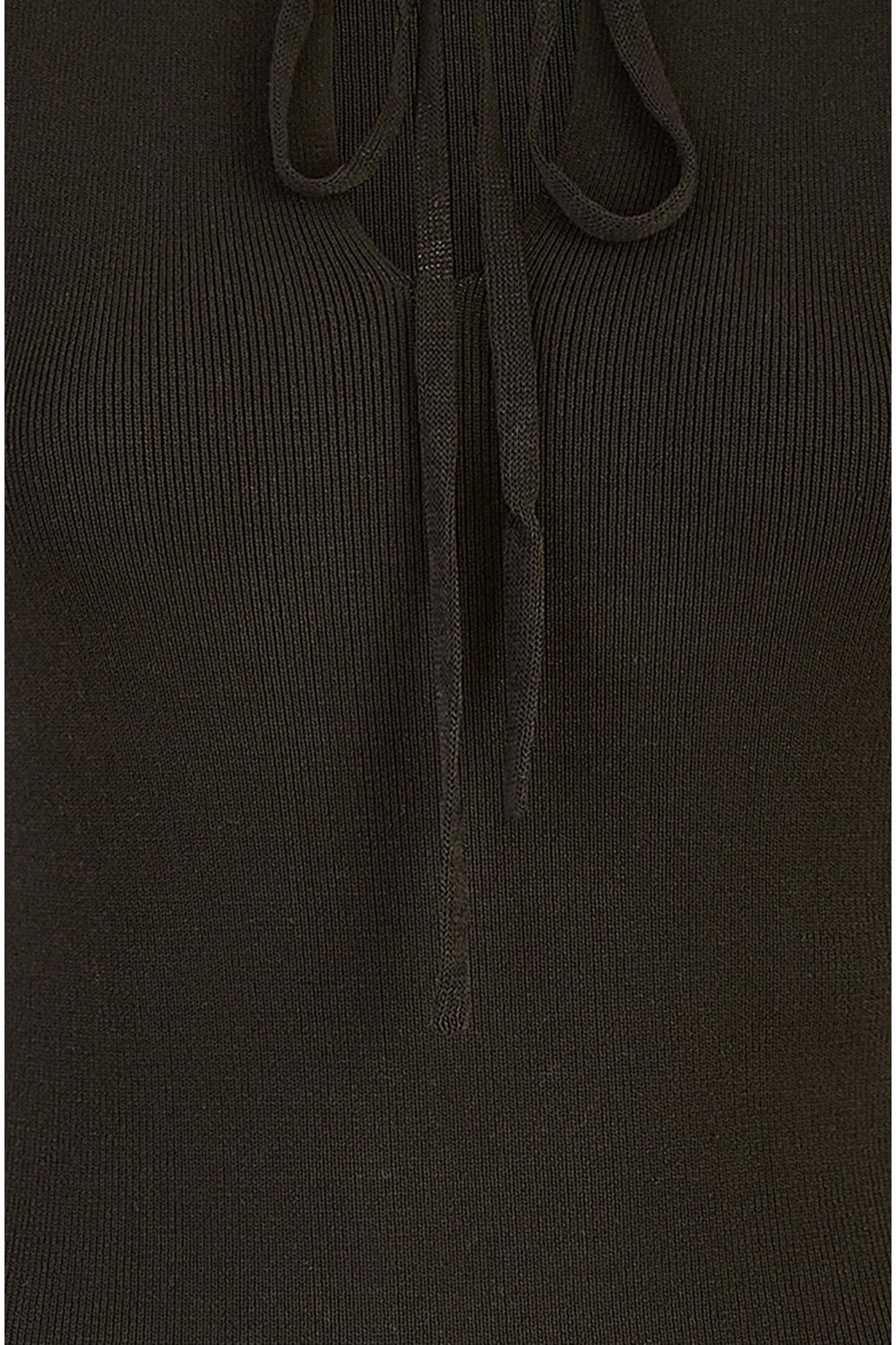 In a rib knit this tunic dress with sheer sleeve detail is perfect for party season. In a figure hugging fit, with a notch tie neckline, it's a elegant alternative to sequins this season. As we move towards cooler weather add this to your wardrobe for those last minute invites.
