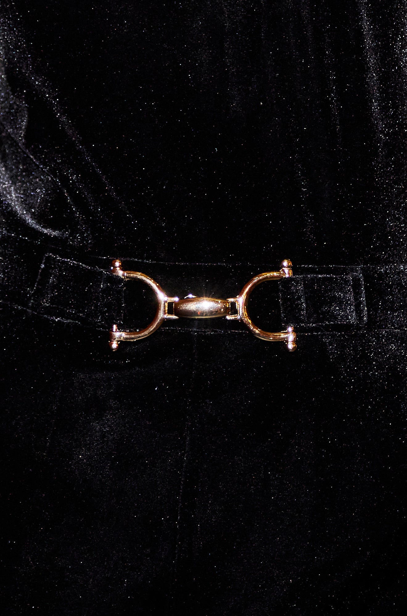 Yumi Black Velvet Jumpsuit With Twist Neckline And Buckle Belt