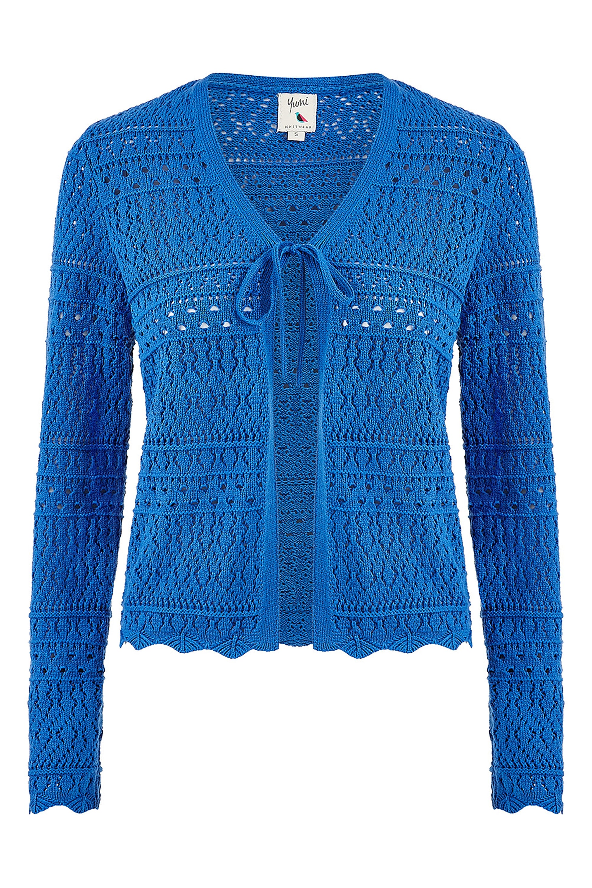 Yumi Blue Crochet Tie Front Cardigan