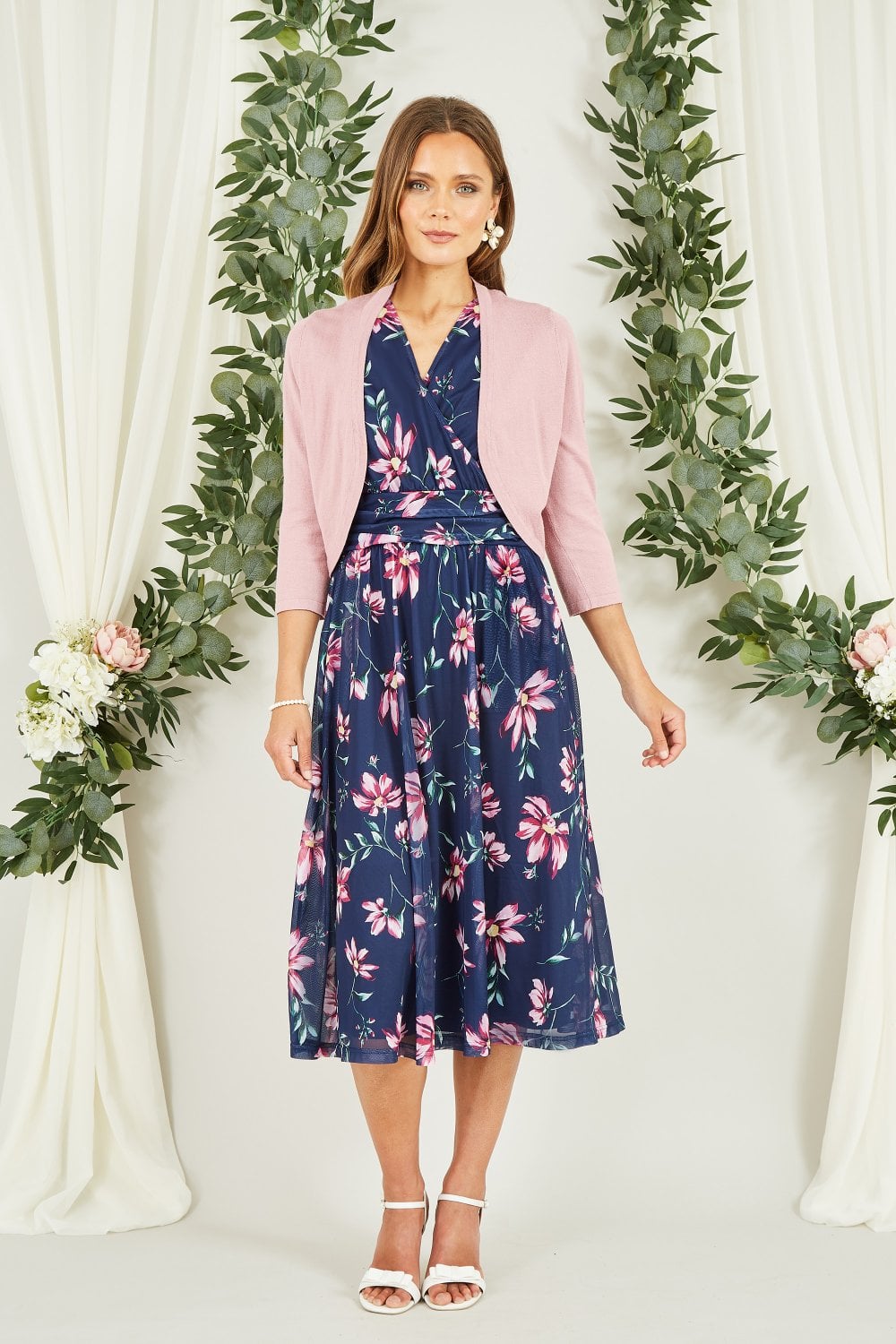Layer up with this Blush Knitted Bolero. Made in a close knit soft feel fabric. This little number is perfect to layer over any dress for those fancy events to keep you looking sophisticated. In a simple edge to edge curve design, this piece will sit at the waist, with a 3/4 sleeve to keep the chill off.