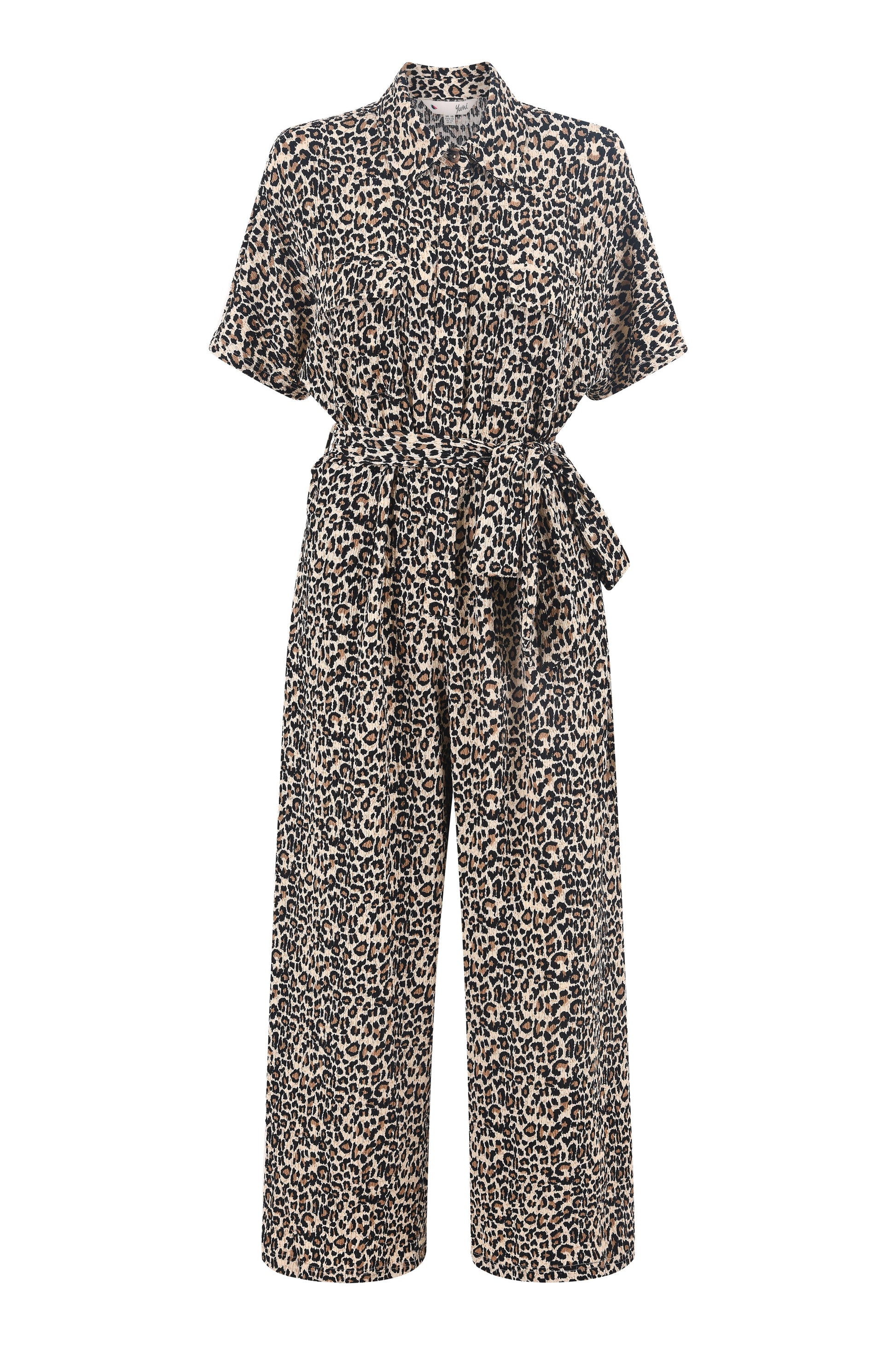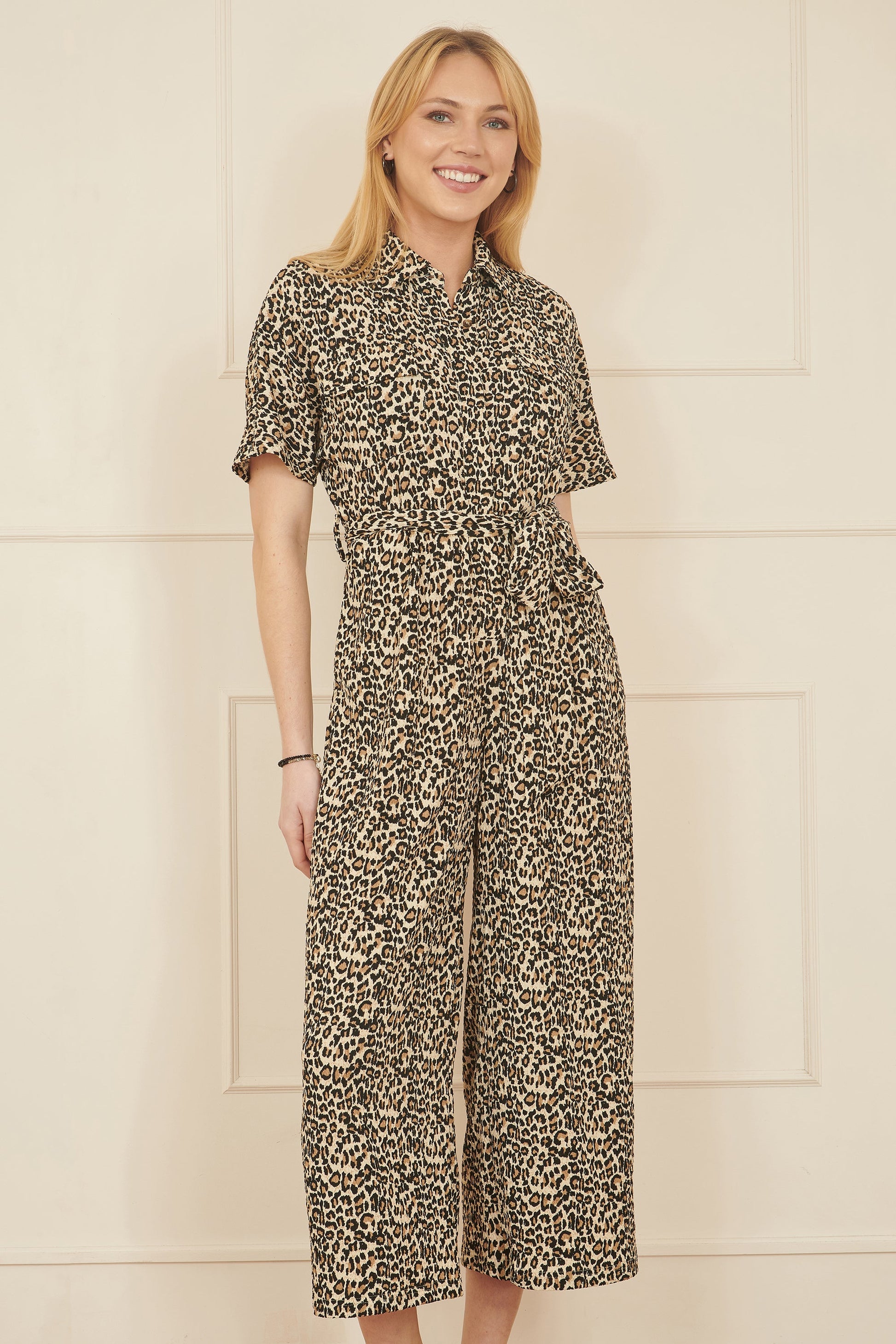 Style meets safari in this cute button down jumpsuit. With all over mini leopard print that is bang on trend and perfect for the changing seasons. With looks super stylish with boots and a bomber jacket for the cooler weather or switch to sandals in the summer, The wide leg design is framed with a tie belt at the waist for a flattering fit.