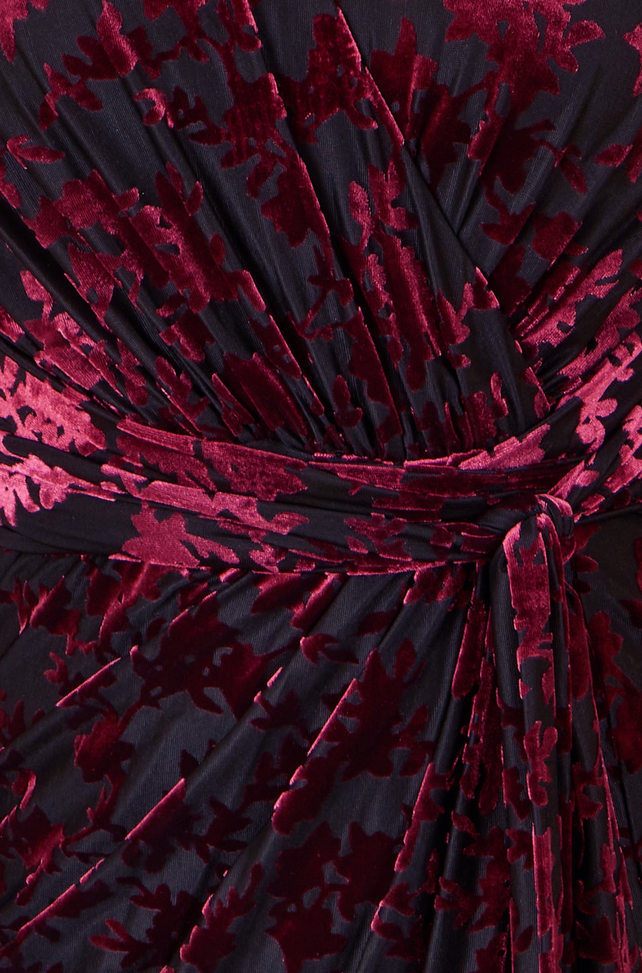 Chic and stylish for any invite this season - This midi dress from Yumi is crafted from gorgeous velour with a lead design. It oozes elegance in a wrap over shape with a V neckline and super flattering ruching at the waist, the hemline is split.