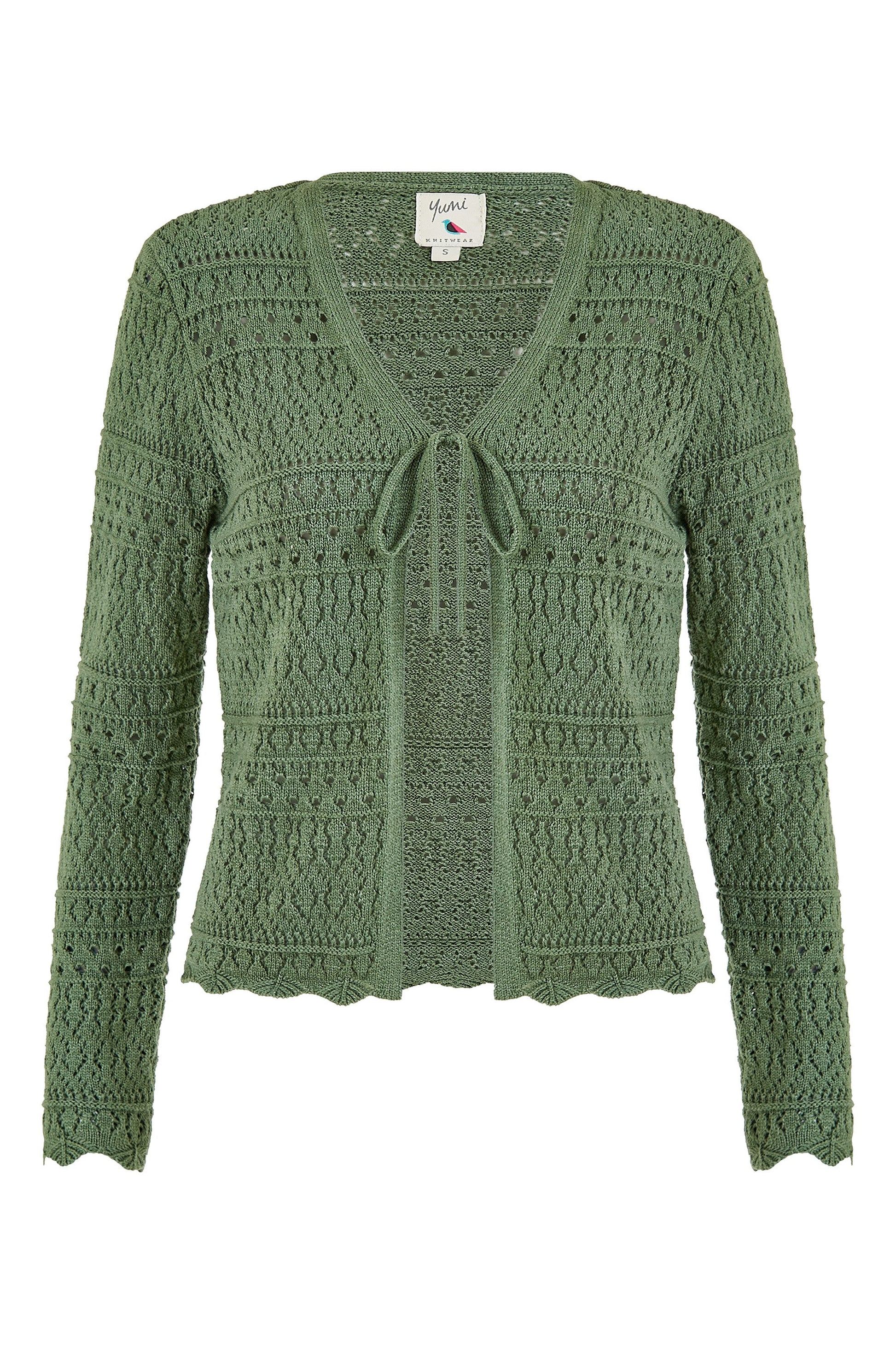 Yumi Green Crochet Tie Front Cardigan