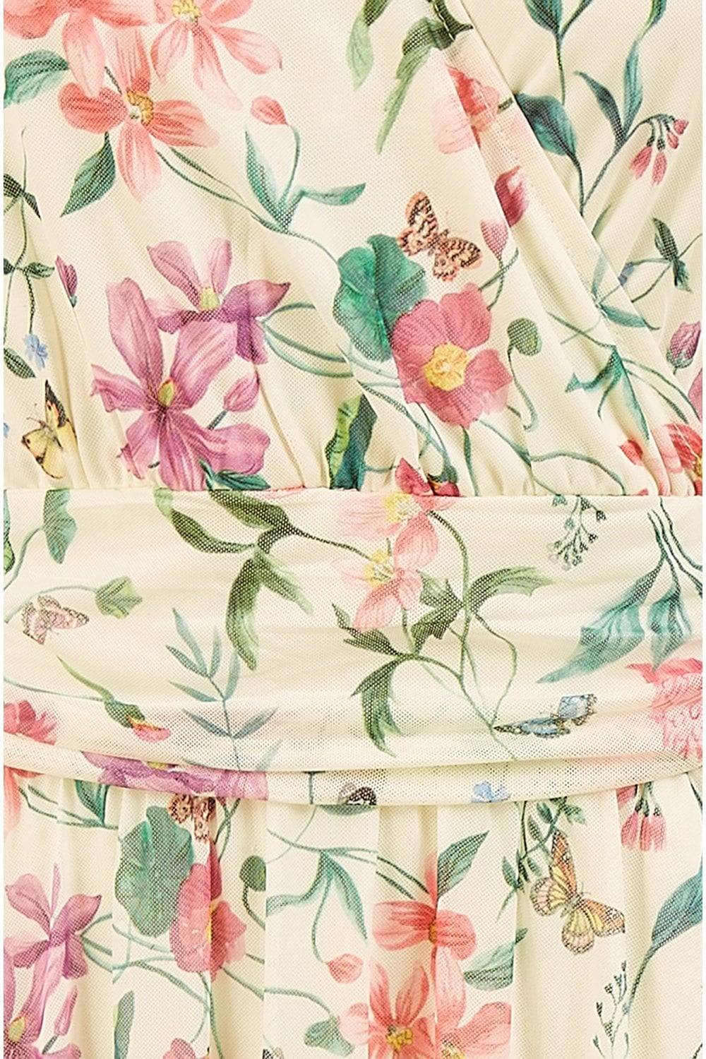 Yumi Ivory Floral Print Mesh Stretch Midi Dress With Pockets