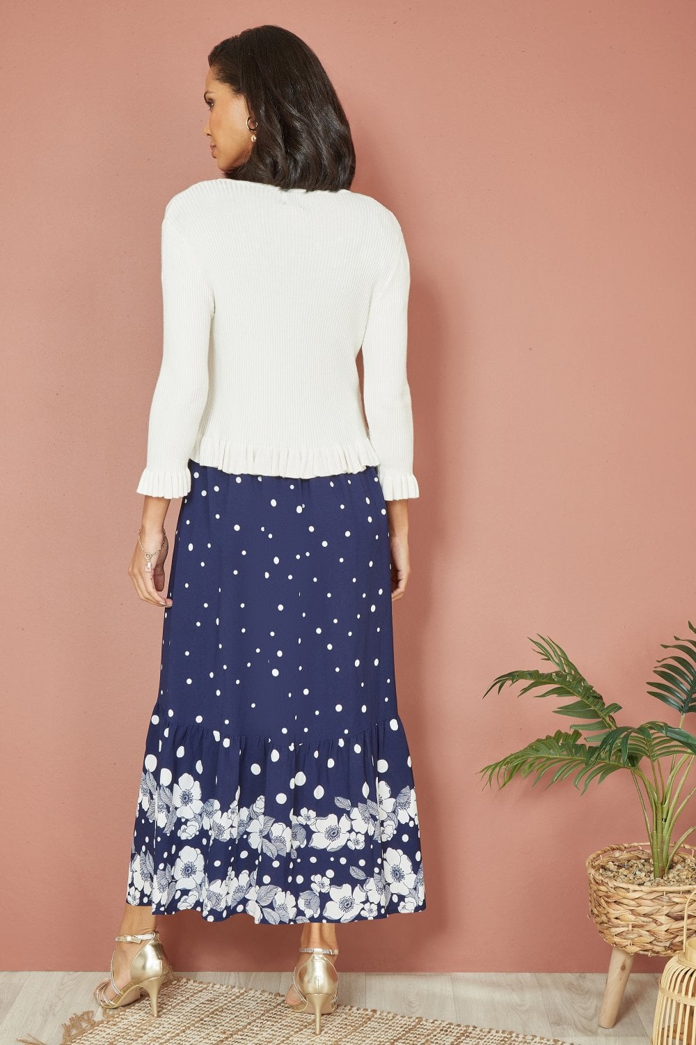 Yumi Ivory Tie Up Ribbed Cardigan With Frill Hem