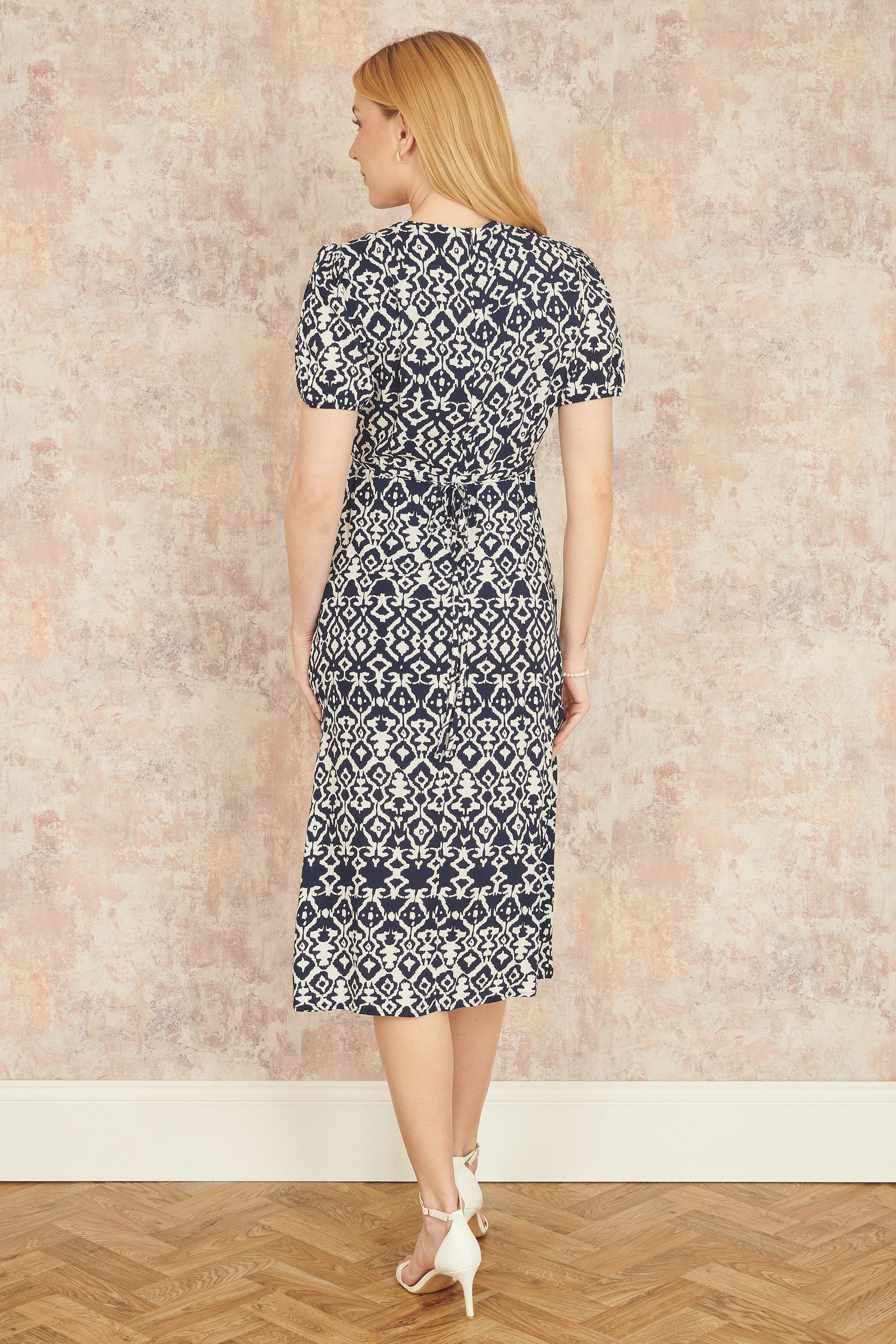 Yumi Navy Ikat Print Midi Dress With Split Hem