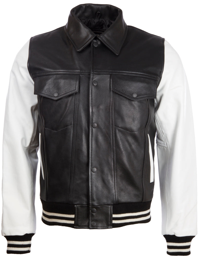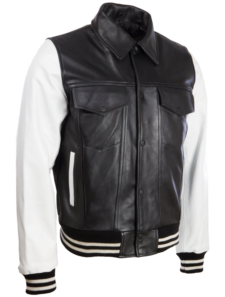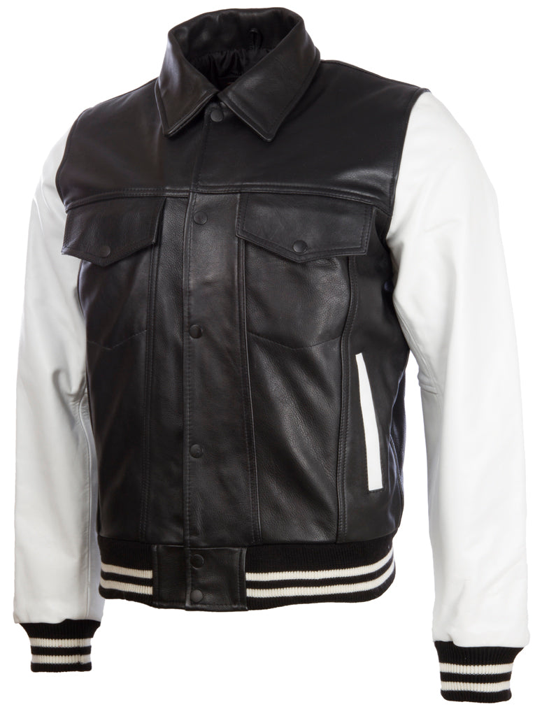 - Men's Real Leather Bomber Varsity Trucker Fashion Jacket