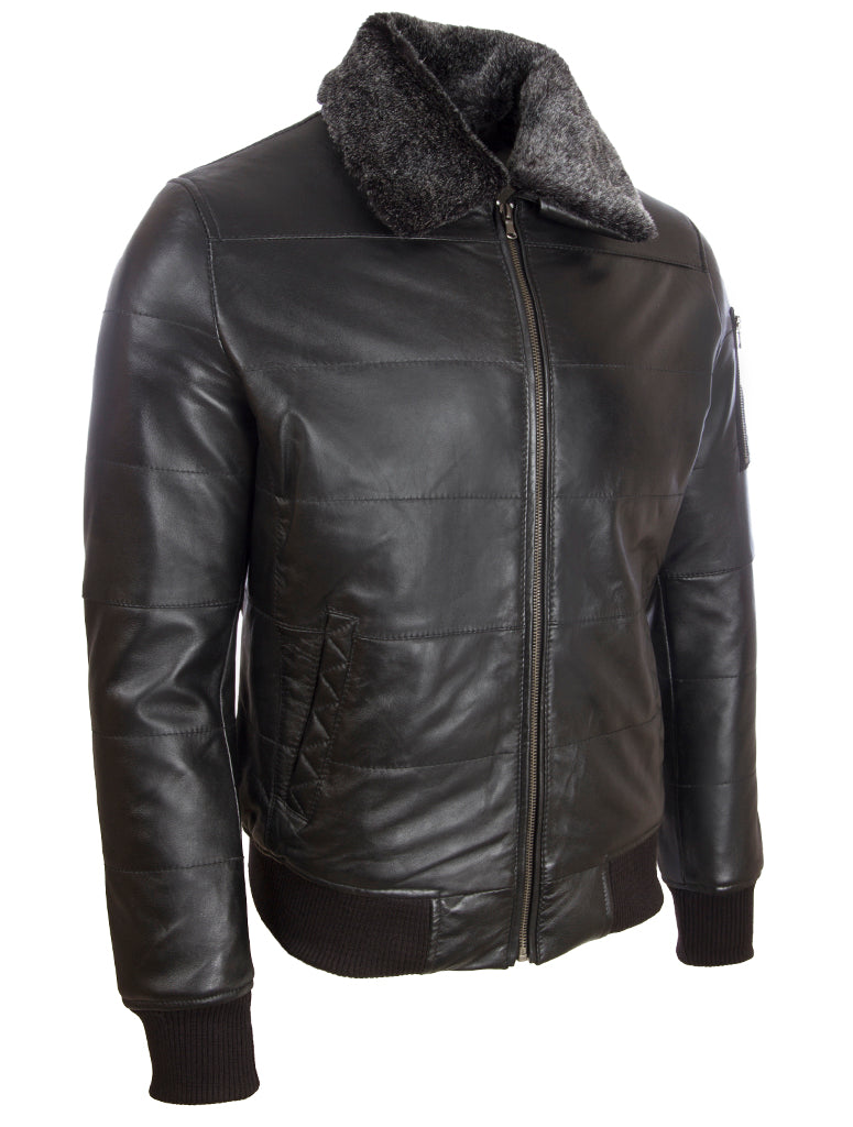 ZADV Men's Puffer Fur Aviator Bomber Jacket - Black