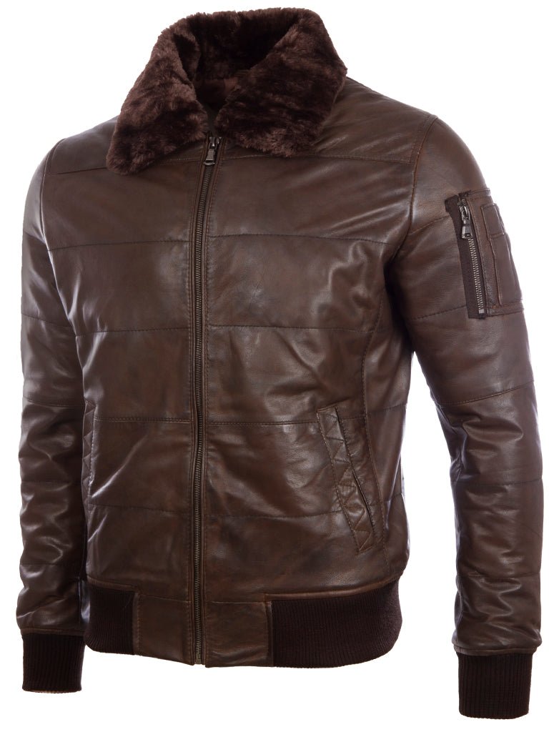 ZADV Men's Puffer Fur Aviator Bomber Jacket - Nevada Brown